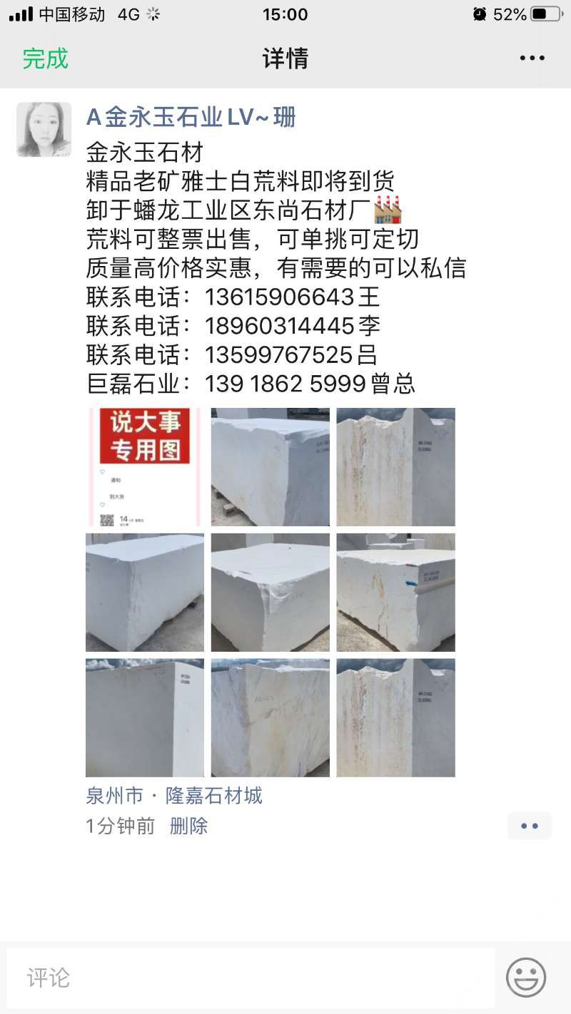 ??荒料庫存2000多噸