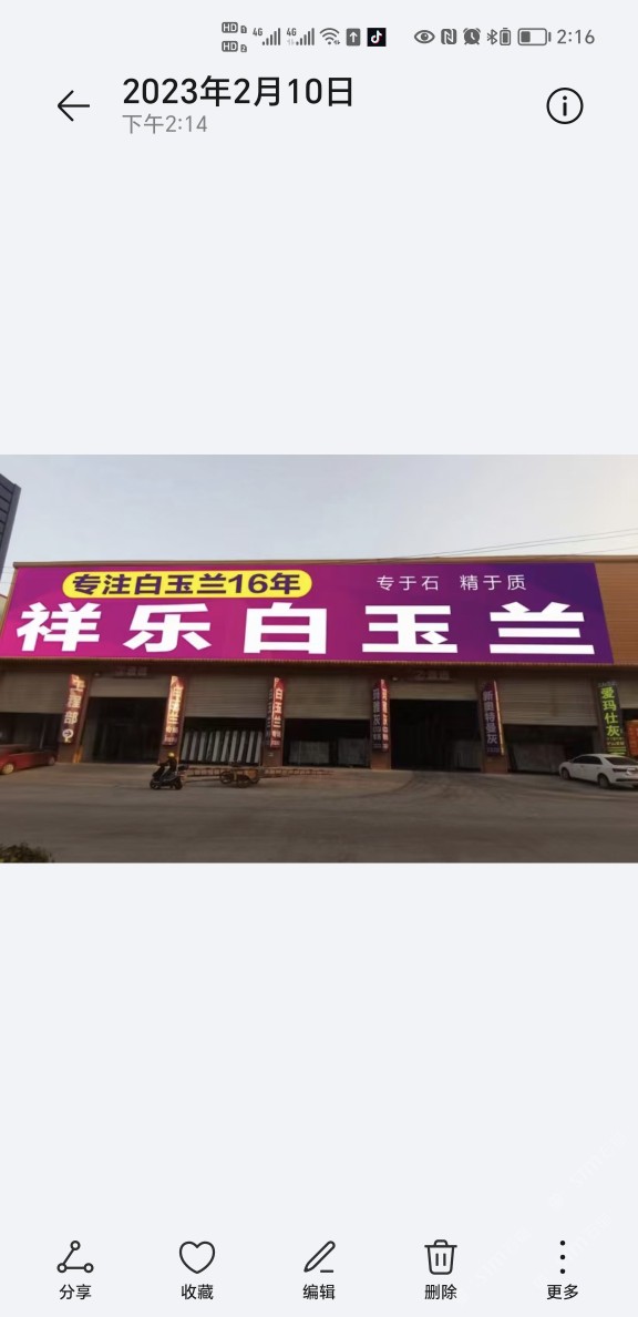 專(zhuān)營(yíng)白玉蘭、閃電,月均到貨量3000噸,大板庫(kù)存量白玉蘭10萬(wàn)平方,閃電3萬(wàn)平方