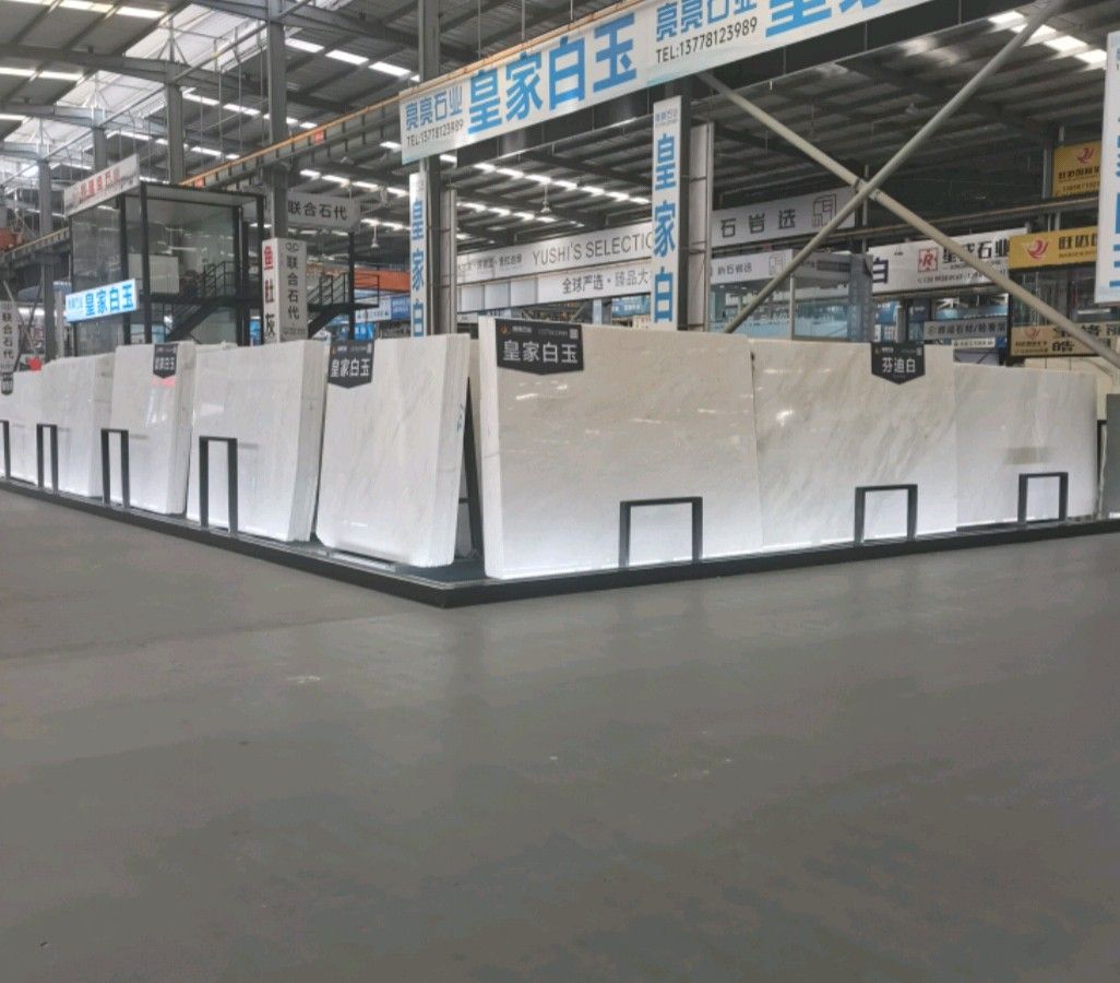 中國(guó)福建泉州水頭鎮(zhèn)東星大板市場(chǎng)三號(hào)門一通道亮亮石業(yè)皇家白玉專場(chǎng)