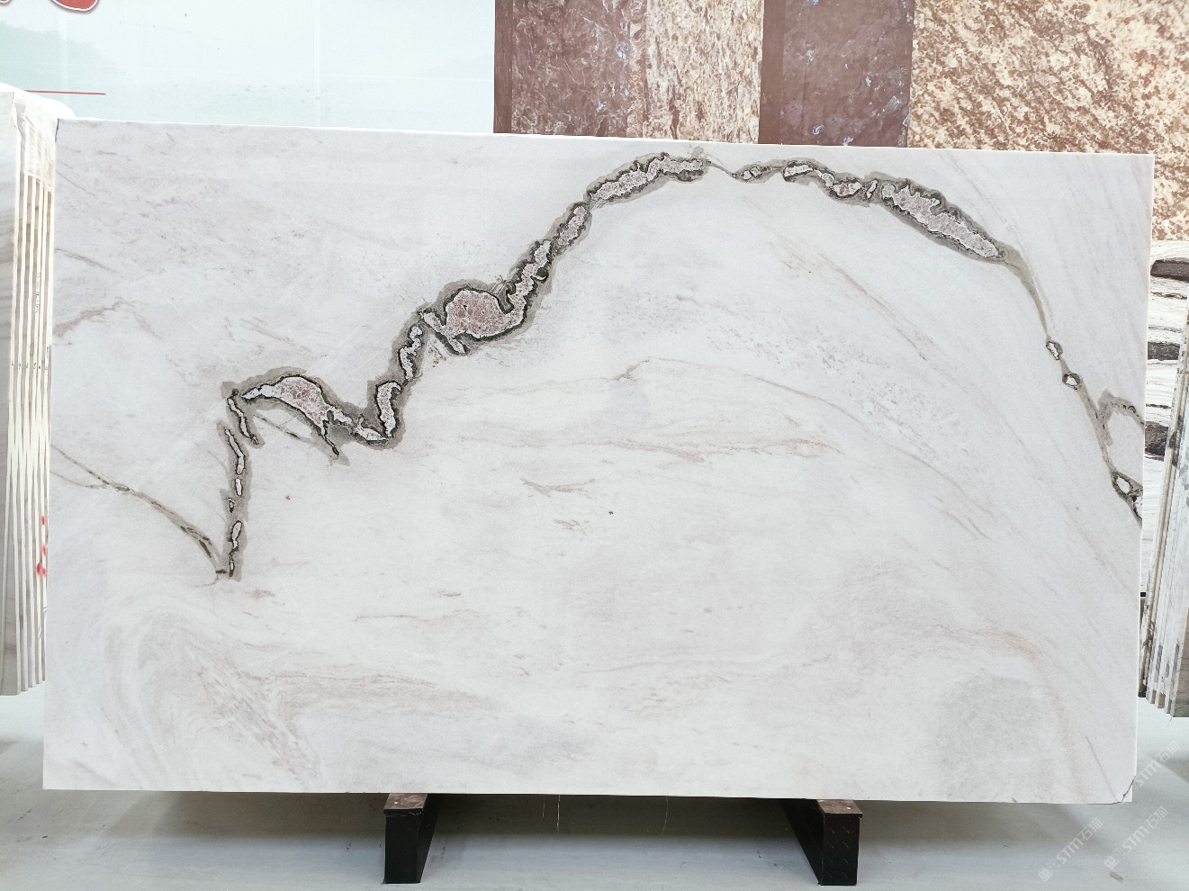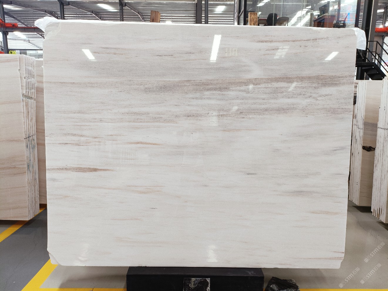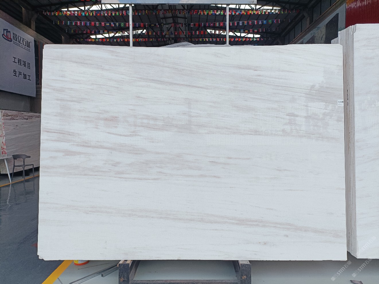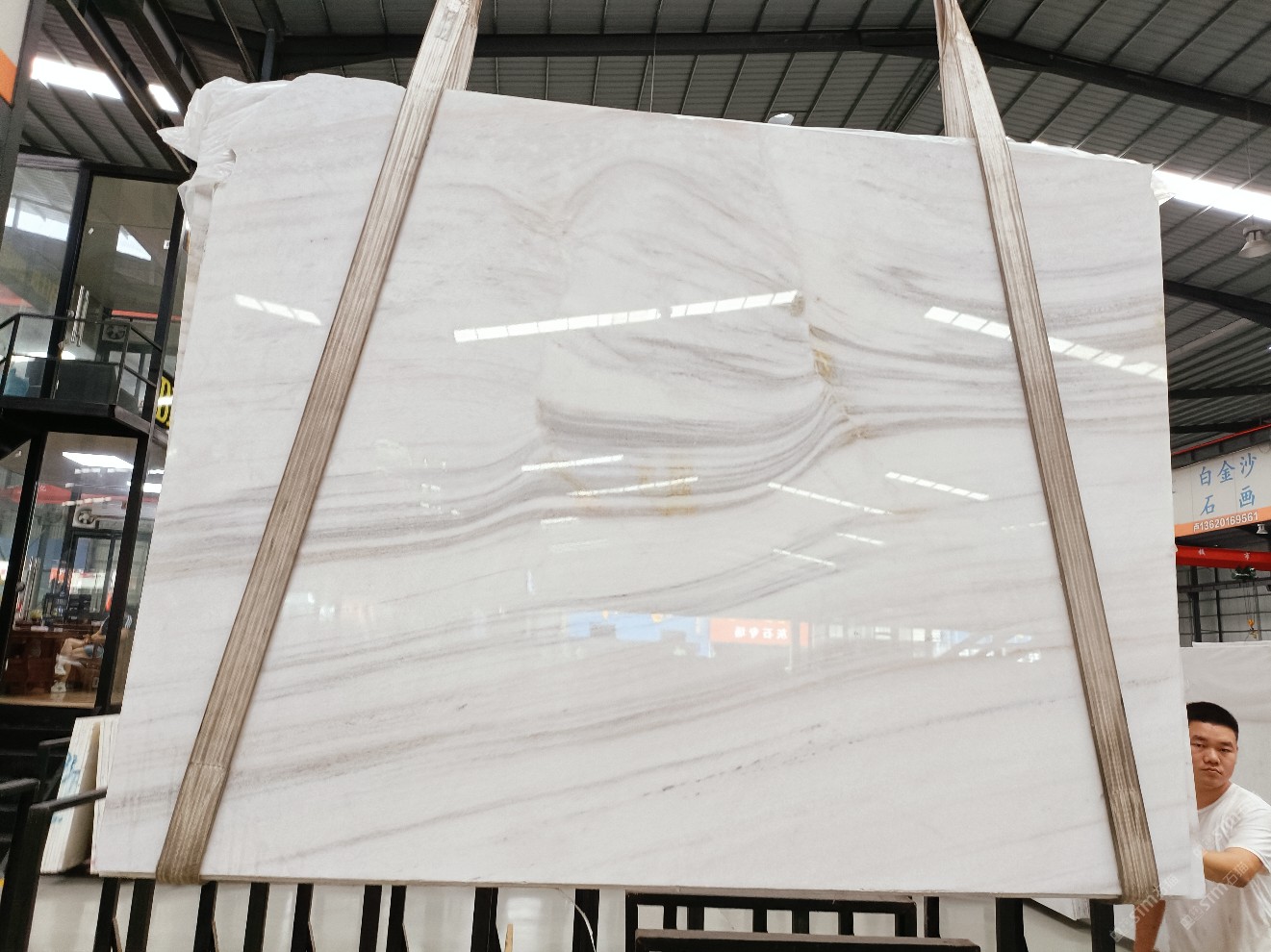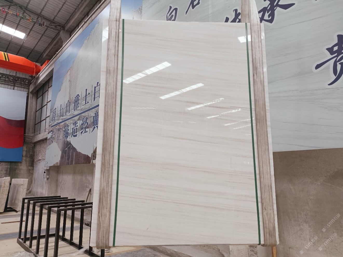 云浮站石材公司開發(fā)的歐亞白獨(dú)立礦山,專屬道路,礦口面積約 725 畝,證件齊全。今年礦口開采出直紋,亂紋優(yōu)質(zhì)大板材料,礦山采用單面墻平臺(tái)開采方式,10臺(tái)繩鋸、5臺(tái)鏟車、5臺(tái)勾機(jī)、一臺(tái) 30 噸叉車,共有職工40人,已有兩個(gè)開采平臺(tái)。礦山已開采多年,道路、設(shè)施都已成熟,現(xiàn)產(chǎn)能穩(wěn)定增長(zhǎng)。品質(zhì)非常穩(wěn)定,一石兩面分別可以產(chǎn)出直紋和亂紋兩種紋路,材質(zhì)為細(xì)膩的玉質(zhì)品體。