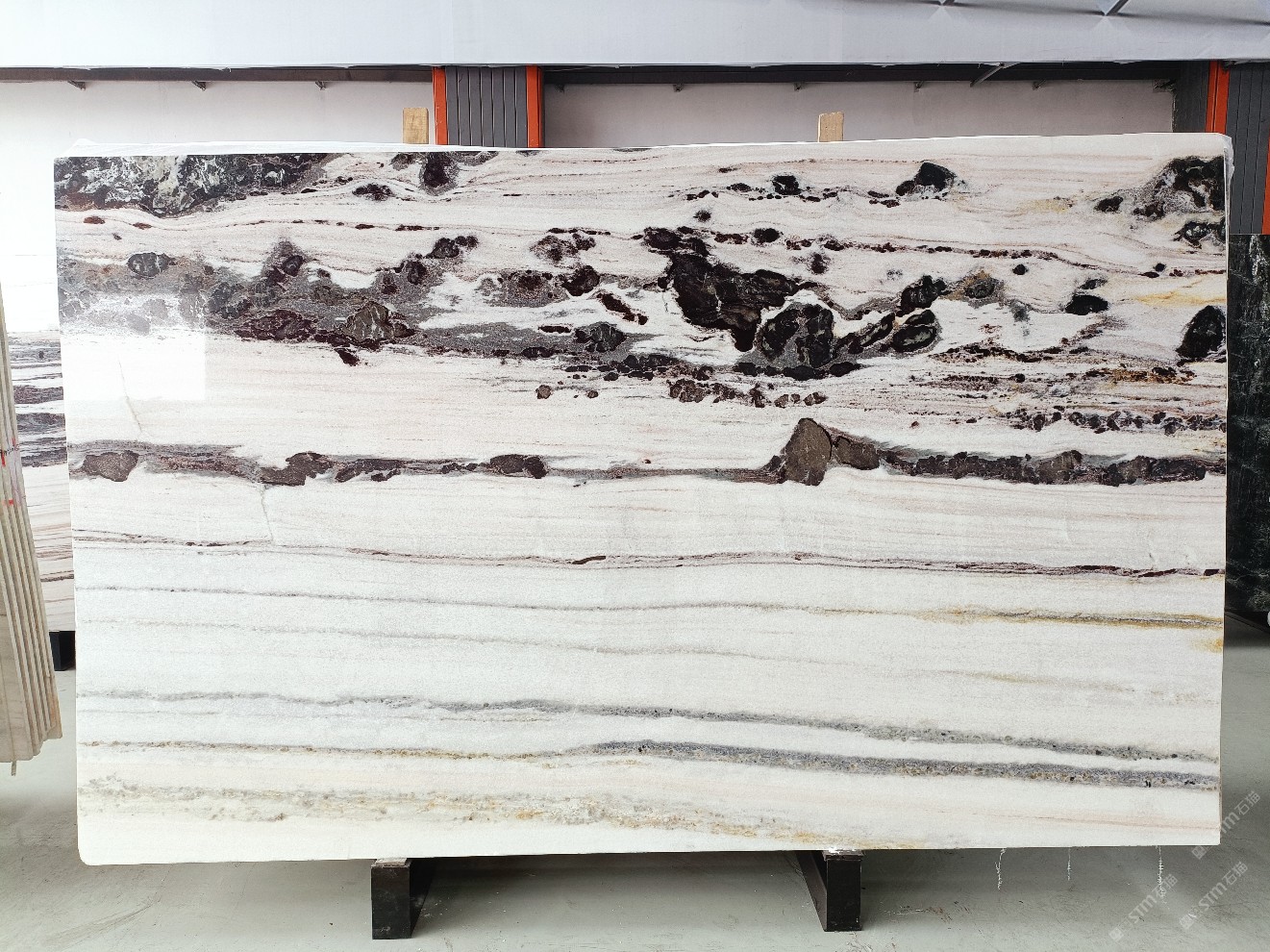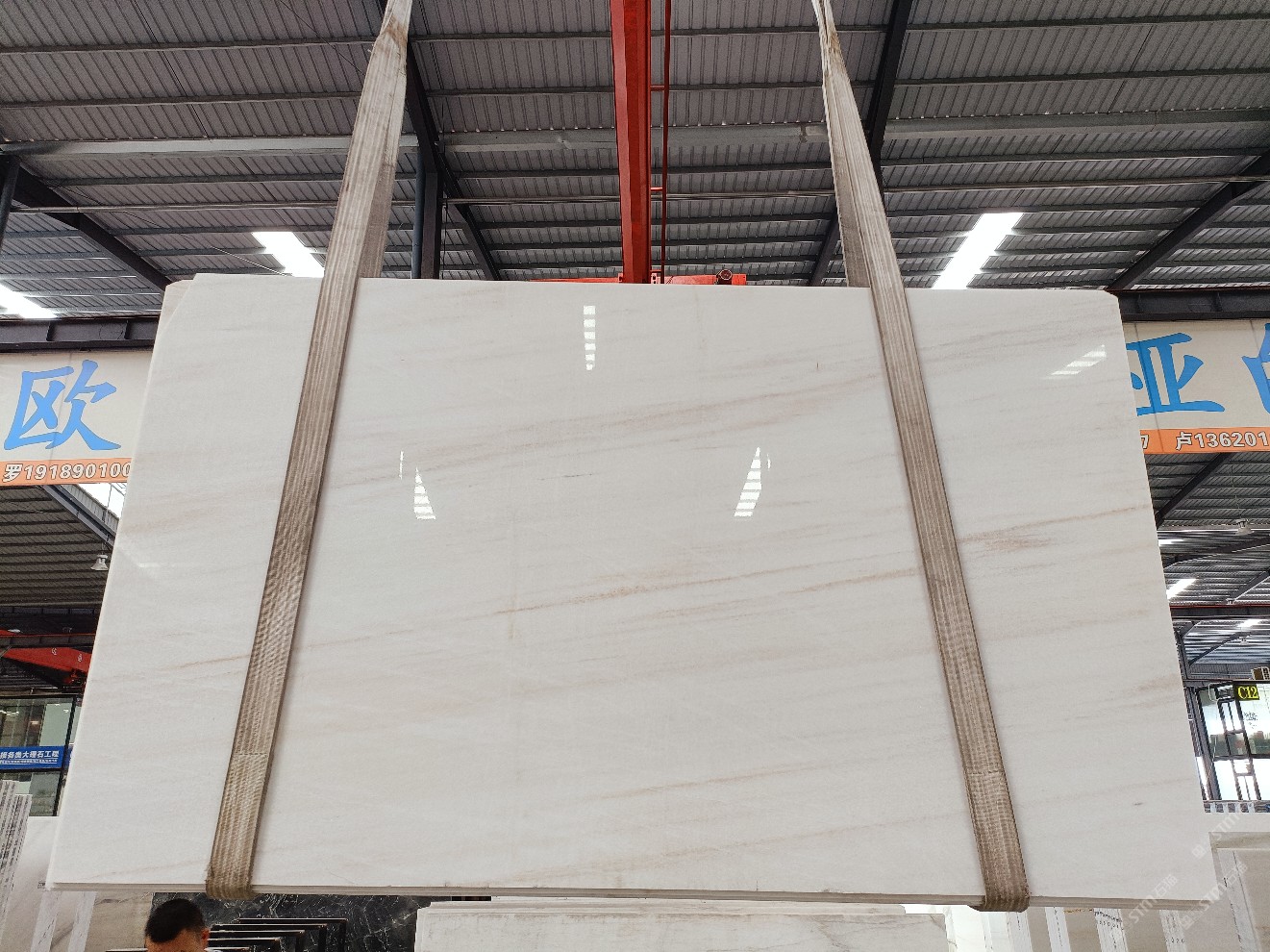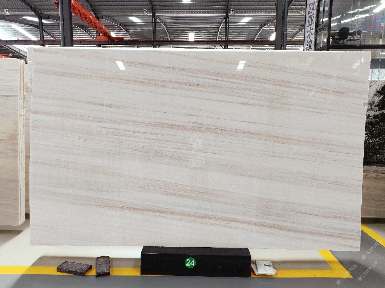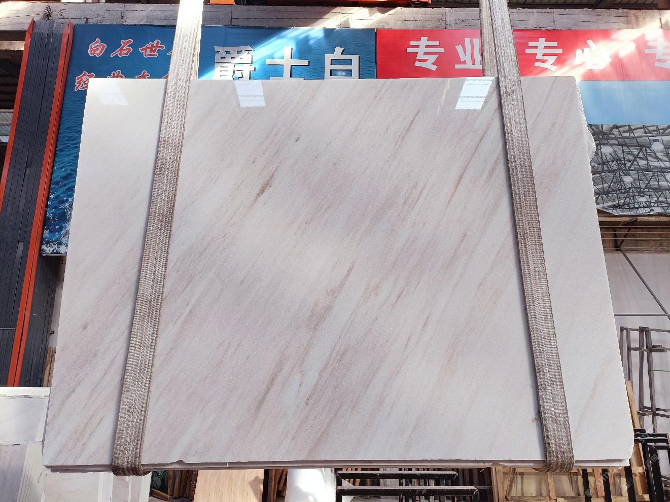 云浮站石材公司開發(fā)的歐亞白獨(dú)立礦山,專屬道路,礦口面積約 725 畝,證件齊全。今年礦口開采出直紋,亂紋優(yōu)質(zhì)大板材料,礦山采用單面墻平臺(tái)開采方式,10臺(tái)繩鋸、5臺(tái)鏟車、5臺(tái)勾機(jī)、一臺(tái) 30 噸叉車,共有職工40人,已有兩個(gè)開采平臺(tái)。礦山已開采多年,道路、設(shè)施都已成熟,現(xiàn)產(chǎn)能穩(wěn)定增長(zhǎng)。品質(zhì)非常穩(wěn)定,一石兩面分別可以產(chǎn)出直紋和亂紋兩種紋路,材質(zhì)為細(xì)膩的玉質(zhì)品體。