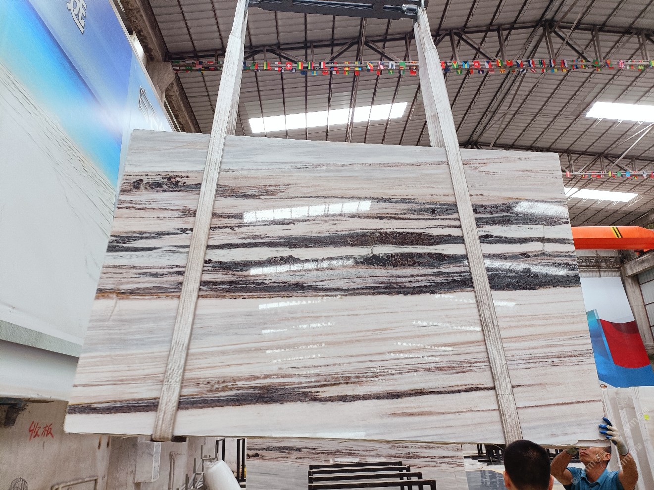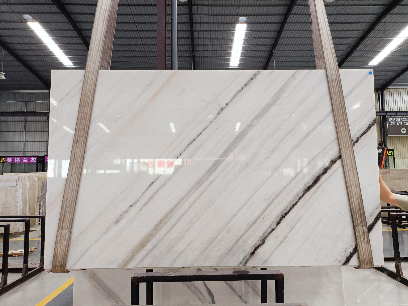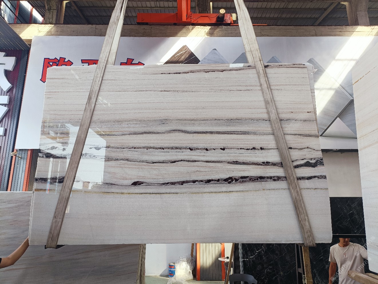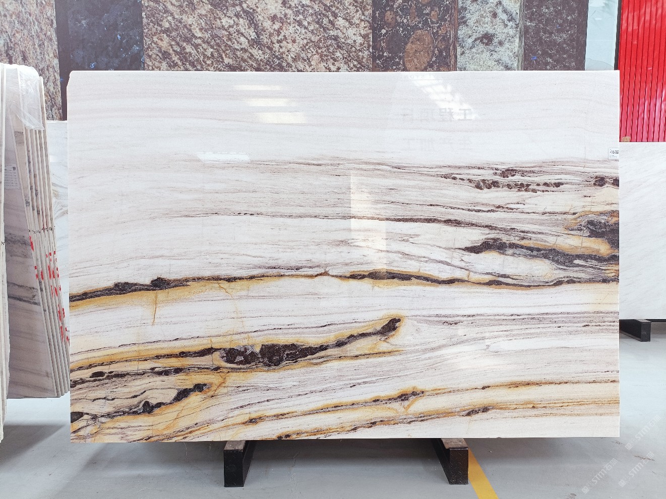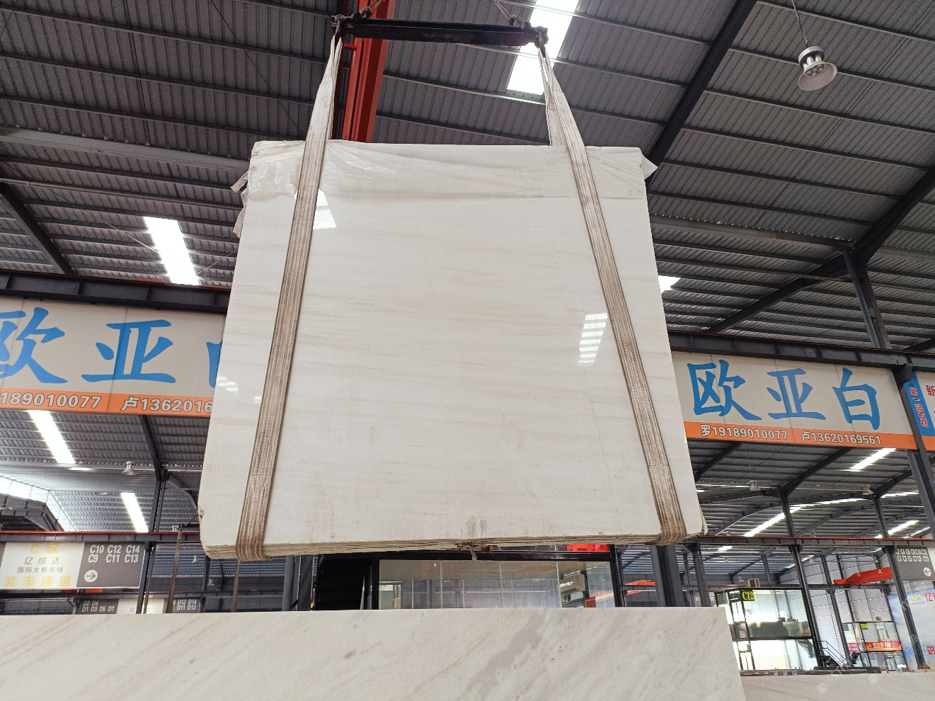 云浮站石材公司開發(fā)的歐亞白獨(dú)立礦山,專屬道路,礦口面積約 725 畝,證件齊全。今年礦口開采出直紋,亂紋優(yōu)質(zhì)大板材料,礦山采用單面墻平臺(tái)開采方式,10臺(tái)繩鋸、5臺(tái)鏟車、5臺(tái)勾機(jī)、一臺(tái) 30 噸叉車,共有職工40人,已有兩個(gè)開采平臺(tái)。礦山已開采多年,道路、設(shè)施都已成熟,現(xiàn)產(chǎn)能穩(wěn)定增長(zhǎng)。品質(zhì)非常穩(wěn)定,一石兩面分別可以產(chǎn)出直紋和亂紋兩種紋路,材質(zhì)為細(xì)膩的玉質(zhì)品體。