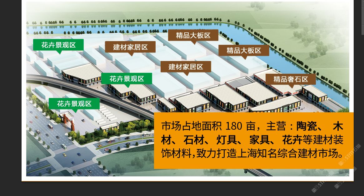 曹安路20年成熟市場,公司自有房產(chǎn)證,地處國際汽車城安亭鎮(zhèn),11號線國際汽車城站200米,附近住宅密集。自2000年開業(yè)以來,已吸引各地300多家廠商入駐,市場運(yùn)營數(shù)十年,區(qū)域功能日臻完善,形成以陶瓷、衛(wèi)浴、木材、石材、家居等聚集區(qū),打造一站式建材家居市場,全方位建材體驗(yàn)中心。 現(xiàn)增設(shè)石材精品館,石材采購基地。