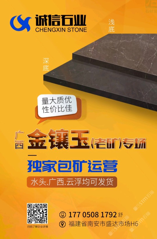 聚賢石業(yè)位于東升石材超市三號(hào)門第三個(gè)行吊,主營(yíng)廣西老礦金鑲玉礦山總包,水頭總代理