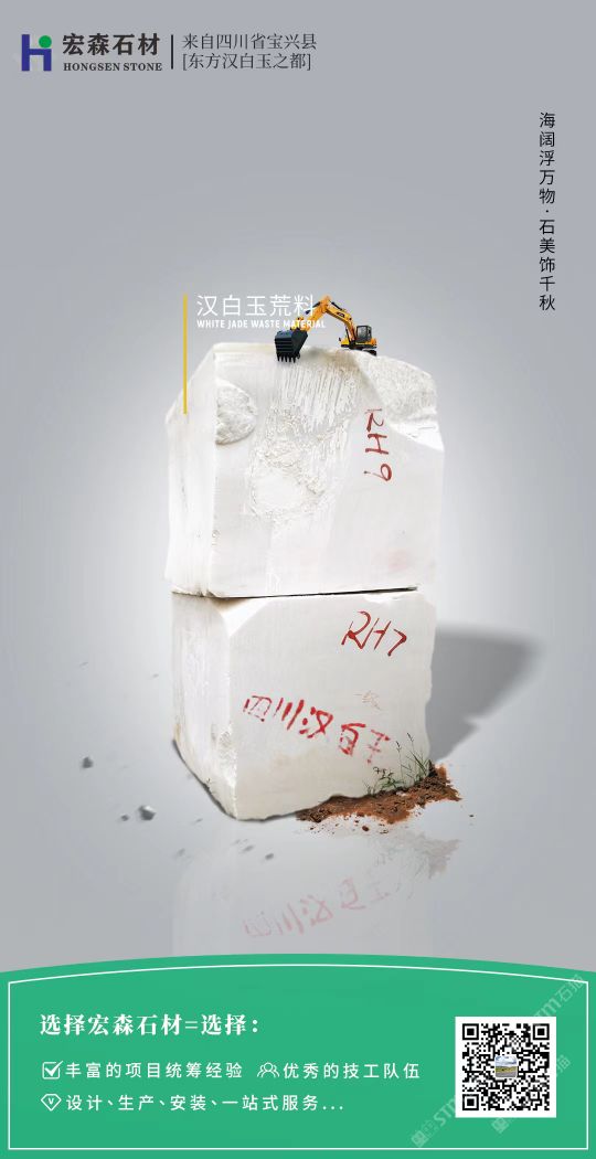 寶興縣宏森石材有限公司” 擁有專業(yè)的工程項目解決方案,是一家石材與裝飾一體化服務(wù)商,勵志建立社會、伙伴、客戶的合作同盟,謀求價值化,寶興縣宏森石材有限公司座落在被譽為的漢白玉大理石故鄉(xiāng)四川省雅安市寶興縣靈關(guān)鎮(zhèn)工業(yè)開發(fā)區(qū),是一家集礦山開采、石材加工銷售、產(chǎn)品專業(yè)設(shè)計、安裝于一體的石材公司,發(fā)展至今,公司工程遍布全國。