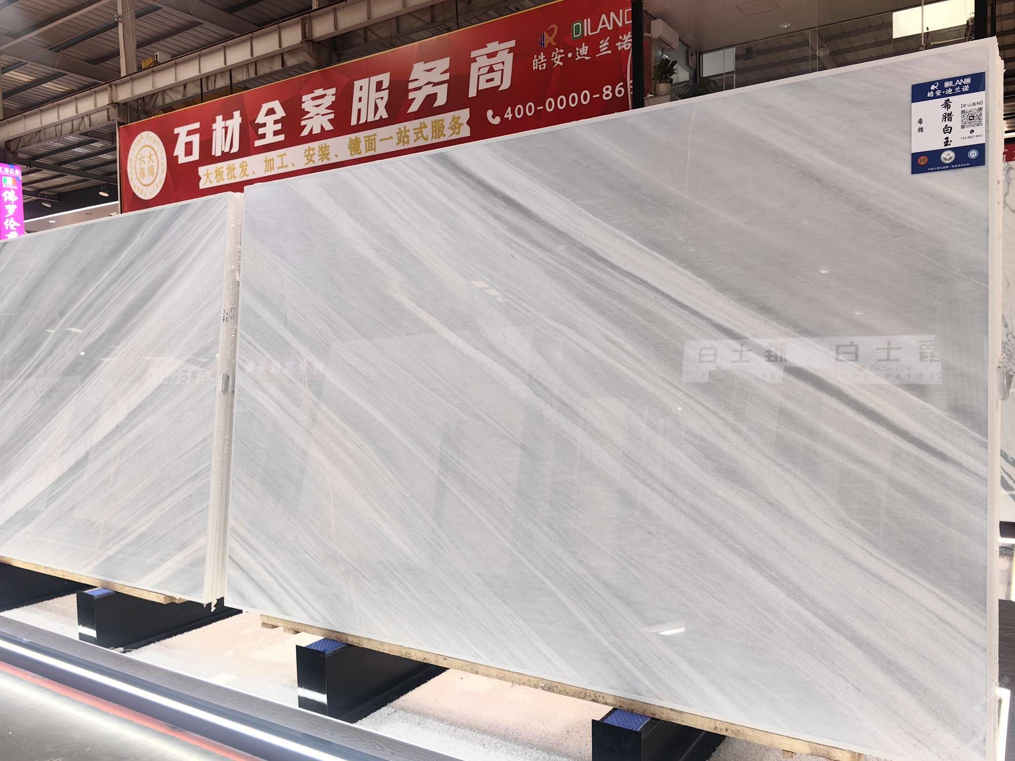 中國福建泉州水頭鎮(zhèn)澳盛大板市5A棟4區(qū)皓安-迪蘭諾輕奢石材全案服務(wù)商選材中心。