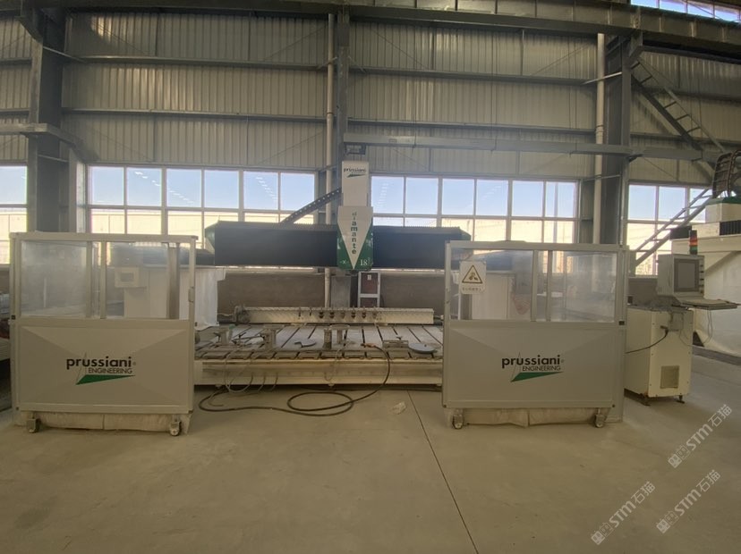 5、Prussiani數(shù)控五軸橋式切割機,CNC控制系統(tǒng),意大利伺服器,可實現(xiàn)0-45度方向的切割,可全自動加工各類異型板材,異型圓柱,加工精度高,效率高,功耗低。