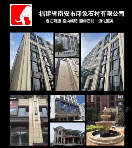 福建省南安市印象石材有限公司是一家融合產(chǎn)品研發(fā)、礦山開發(fā),生產(chǎn)銷售、加工服務(wù)為一體的大型企業(yè)。主要生產(chǎn)健康石材、高品質(zhì)異型產(chǎn)品,如:高檔石線、門套線、無縫拼花、柱體、浮雕、壁爐、臺(tái)面、欄桿等產(chǎn)品。企業(yè)已經(jīng)通過環(huán)境體系ISO14001以及質(zhì)量體系ISO9001雙國(guó)際認(rèn)證。