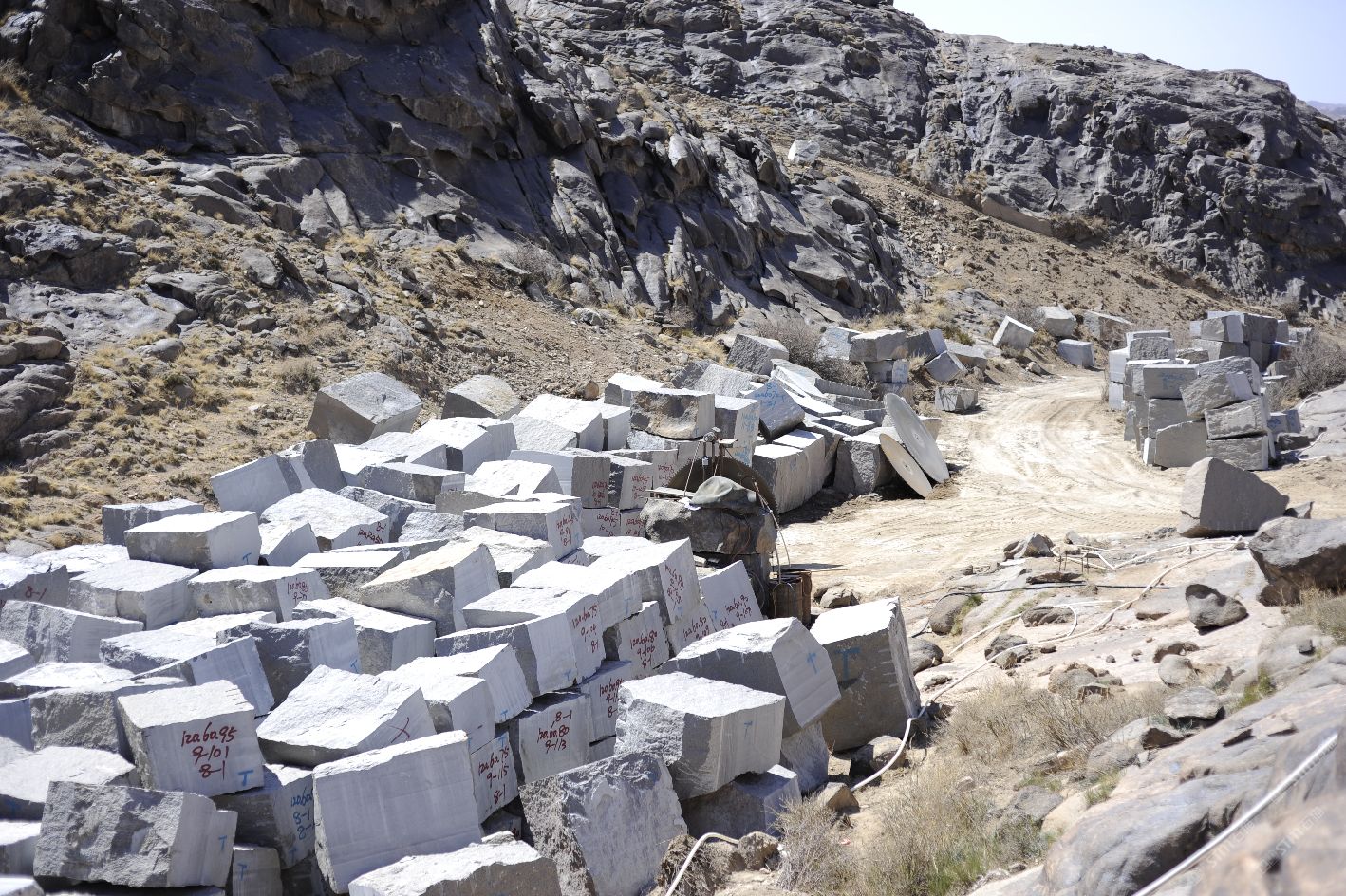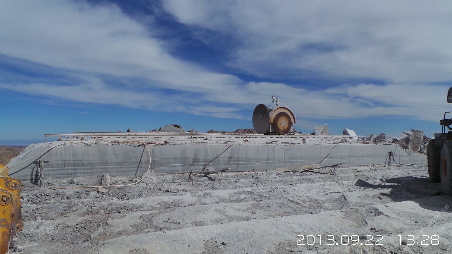 新疆煒通石材工貿(mào)有限責任公司成立于2007年,是一家集礦山開采、板材加工為一體的石材公司。公司擁有的奧莫爾塔格礦山位于哈密市東北方向,直線距離約160千米,礦區(qū)面積1.25平方千米,資源儲量約800萬立方米。礦山擁有一批優(yōu)秀的管理人員、技術(shù)精湛的開采隊伍和先進的機械設備,現(xiàn)有柴油發(fā)電機組8臺,濕式切石機6臺,滿負荷生產(chǎn)規(guī)劃為每年5萬立方米。