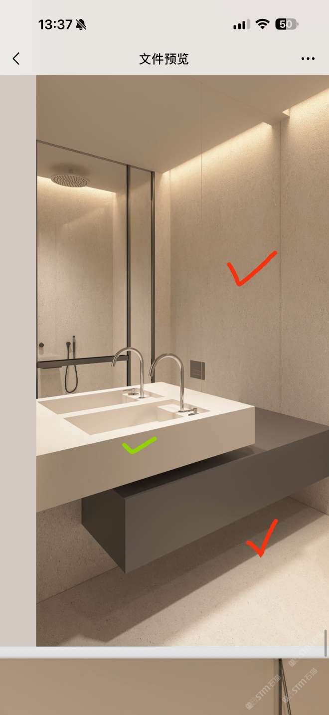 接近紅色?的墻地石材 洗手臺面板綠色?