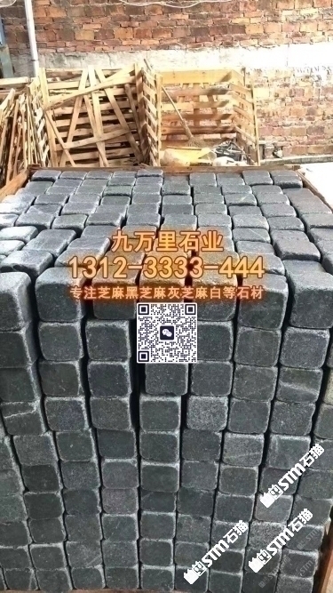 G654花崗巖新老礦芝麻黑石材小方塊馬蹄石彈石地鋪