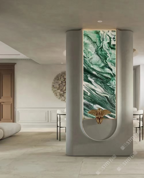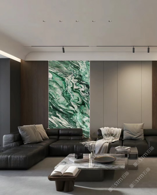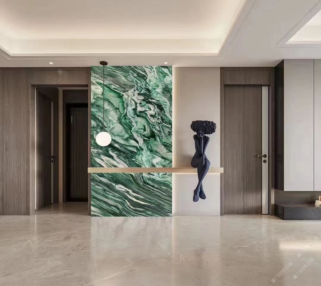 發(fā)布信息: 佰達(dá)奢石「挪威綠」 編號(hào): BD-22097 規(guī)格:2700x1550x18mm 「挪威綠」象征著生命力的綠色為基底,純潔的白色水晶和黑色紋理穿插其中,看上去像一副油畫(huà)一般,具有很強(qiáng)的視覺(jué)沖擊感,藝術(shù)氣息濃厚,不論是作為桌面還是玄關(guān),都能給溫暖的家增添色彩,盡顯,奢華。