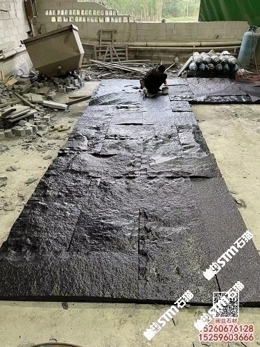 柬埔寨芝麻黑流水石柬埔寨黑石流水幕墻新礦654石材