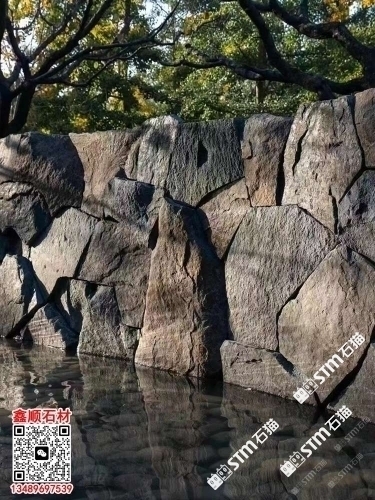 芝麻黑自然面背景墻流水石水景石材流水幕墻石皮背景墻