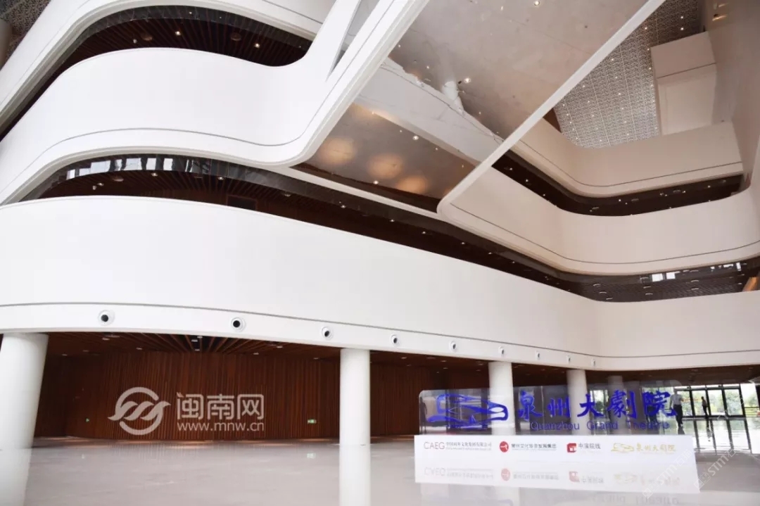 發(fā)布信息: 泉州大劇院整體設(shè)計猶如市花“刺桐花”的泉州市公共文化中心,環(huán)灣面海,欣欣向榮。公共文化中心位于東海片區(qū)山海中軸線中段,毗鄰泉州市政府,四大主體文化場館泉州科技與規(guī)劃館、東海工人文化宮、泉州大劇院、泉州圖書館一起成為“亞洲多元文化發(fā)展中心”。自2015年8月項目啟動建設(shè)以來,倍受泉州市民關(guān)注,這里將成為文化新家園。 “四朵花瓣”之一的泉州大劇院即將于2019年6月30日率先揭幕。 18日上午, 泉州大劇院舉行了 開幕演出季新聞發(fā)布會。 坐落于東海的泉州市公共文化中心 “四朵花瓣”之一的“海絲之花” 率先揭開了神秘面紗。 室內(nèi)設(shè)計延續(xù)外立面元素, 抽取海洋元素疊浪與海面波光等為設(shè)計意向, 水平向的穿孔鋁板像絲綢一般輕盈通透, 表達(dá)出舞蹈的節(jié)奏與音樂的韻律, 也體現(xiàn)出泉州作為“海上絲綢之路”起點城市的文化特點。“海絲樂章”為設(shè)計主題, 建筑外立面設(shè)計采用雙層表皮結(jié)構(gòu), 內(nèi)層為玻璃幕墻,外層為金屬穿孔鋁板表皮, 水平方向的波浪形曲線設(shè)計室內(nèi)設(shè)計延續(xù)外立面元素, 抽取海洋元素疊浪與海面波光等為設(shè)計意向, 水平向的穿孔鋁板像絲綢一般輕盈通透, 表達(dá)出舞蹈的節(jié)奏與音樂的韻律, 也體現(xiàn)出泉州作為“海上絲綢之路”起點城市的文化特點。