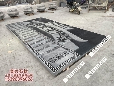 印度黑金沙花崗巖族譜牌匾匾額雕刻刻字藝術(shù)浮雕定制