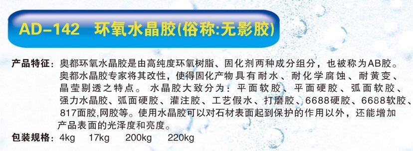 發(fā)布信息: AD-142--環(huán)氧水晶膠(俗稱:無影膠) 產品功能如圖二