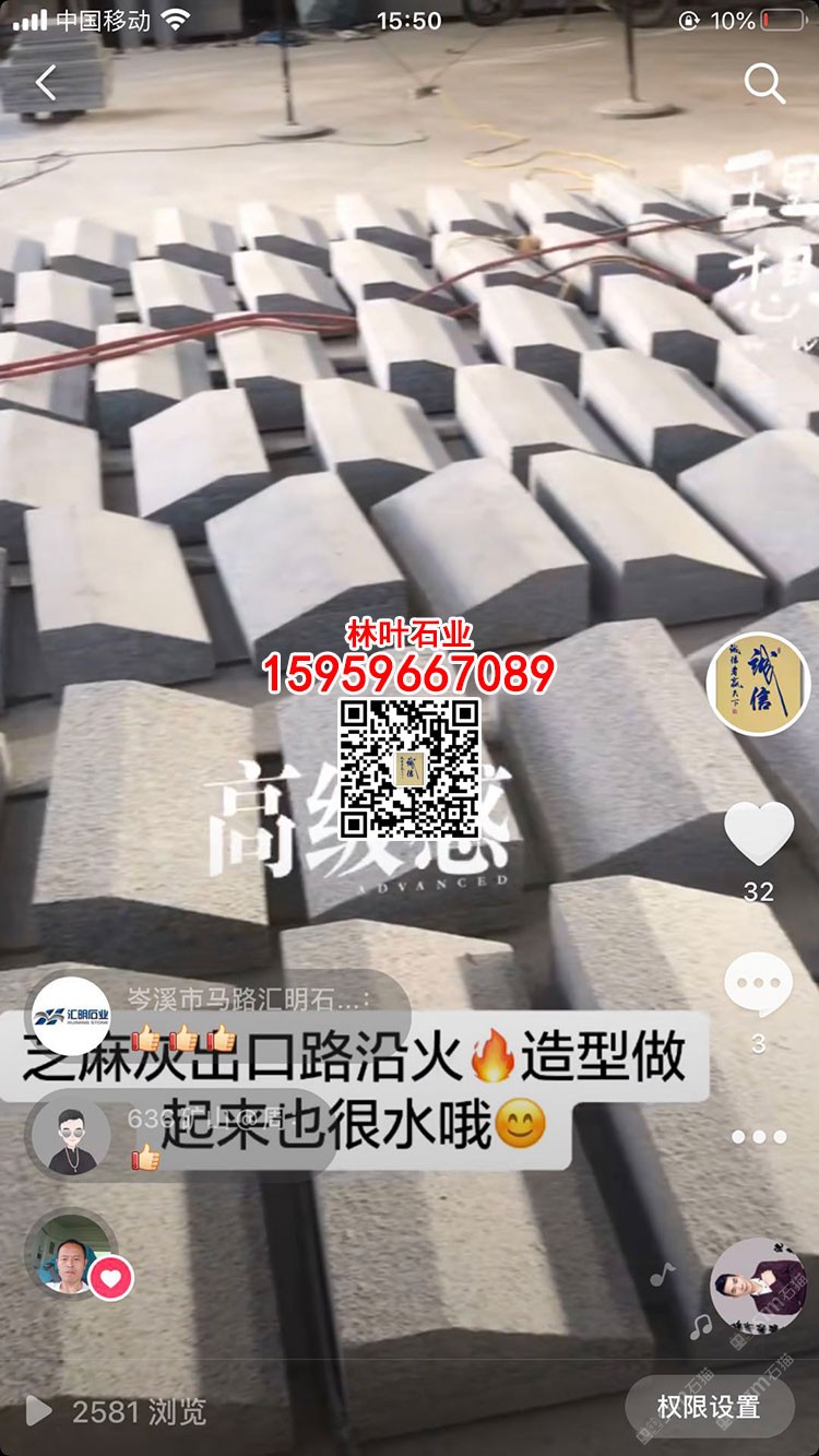 發(fā)布信息: 林葉石業(yè)長(zhǎng)泰工廠(林總15959667089微信同號(hào))專(zhuān)業(yè)老礦芝麻黑與芝麻灰供應(yīng)商,專(zhuān)注于出口及高品質(zhì)工程國(guó)內(nèi)外園林景觀石材;主營(yíng):老礦芝麻黑墓碑石、正礦吳田山G654窗臺(tái)板、G654芝麻黑牛鼻子、芝麻黑石材游泳池蓋板、老礦芝麻黑出口高品質(zhì)工程板、老礦654小方塊馬蹄石、芝麻灰G655路沿石、深灰麻石材、中灰麻石材、深灰色花崗巖、黑色麻石等光面、燒面、荔枝面、墓碑石材、地鋪石材、園林景觀工程、路沿石材等;林葉石業(yè)寧德工廠(葉總18050650127微信同號(hào))專(zhuān)業(yè)新礦芝麻黑寧德小藍(lán)寶,廠礦一體,體格優(yōu)惠,真誠(chéng)希望您的光臨與合作!(聲明上傳產(chǎn)品圖片均是本廠加工生產(chǎn))