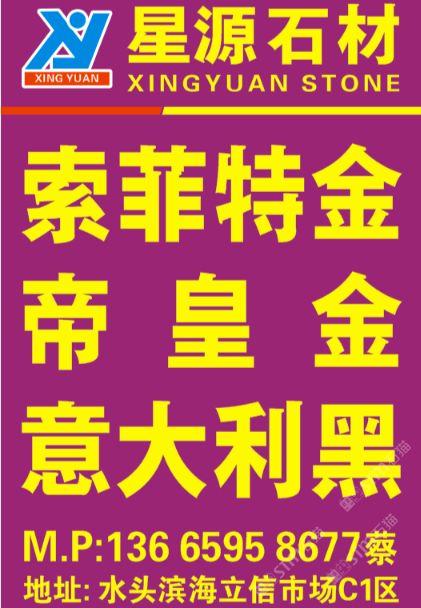 發(fā)布信息: 星源石材:新做出來帝皇金.索菲特金……長期供應大量~索菲特金(利瑪?shù)V).帝皇金.意大利黑.愛馬仕灰……等等!??需要的可以聯(lián)系13665958677蔡