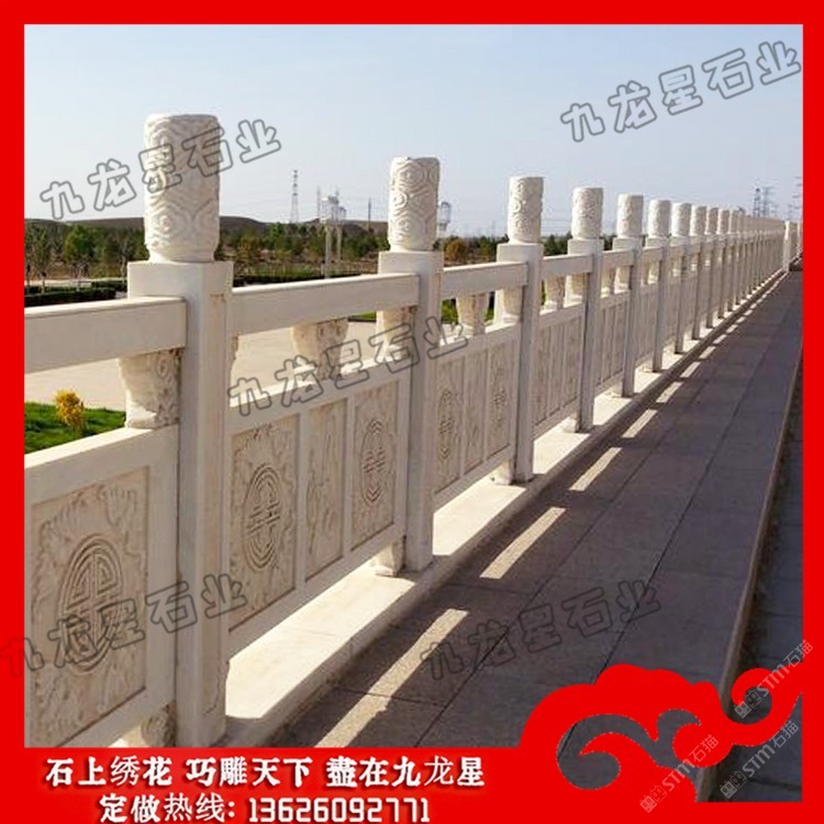 發(fā)布信息: 高速公路石雕護(hù)欄 花崗石欄桿加工廠家——九龍星石業(yè)。 花崗石欄桿加工廠家在設(shè)計(jì)的時(shí)候要規(guī)定尺寸,花崗巖石材的尺寸和規(guī)模決定了它的價(jià)格標(biāo)準(zhǔn) ,石欄桿廠家在加工欄桿的時(shí)候根據(jù)尺寸大小確定好花崗巖石欄桿的形狀,再將花崗 巖石欄桿制成不同的造型,這些造型目前可以分為歐式的、連續(xù)式的、寶瓶式的、簡(jiǎn) 易式的等等、這些造型可以的多樣性可以適用于任何場(chǎng)所中。 高速公路石雕護(hù)欄的制作造型采用橫檔以及花飾,石欄桿安裝的場(chǎng)所一般在河邊,護(hù)城河使用量 大,石欄桿制作雕刻亮點(diǎn)在于立桿的設(shè)計(jì),立桿的制作可以柱子成寶瓶柱或者花瓶柱 ,欄桿的制作根據(jù)不同地方的應(yīng)用在雕刻制作上的樣式上也不同。石欄桿的安裝在各 大建筑領(lǐng)域中應(yīng)用也很多,會(huì)有局部的鏤空形式,這種制作造型的石欄桿在景觀橋上 的使用頻率較多。 石雕欄桿作為橋上的扶手,主要是承擔(dān)兩個(gè)作用,一是便于游客手扶,二是防止行人 或者是機(jī)動(dòng)車墜入橋下,因?yàn)樗淖饔盟詮S家在制作的時(shí)候要按照對(duì)應(yīng)要求來(lái)進(jìn)行 制作。因?yàn)槿藗冏咴跇蛏系臅r(shí)候會(huì)手扶石雕欄桿,所以這就要求欄桿的表面要打磨的 相對(duì)舒適。