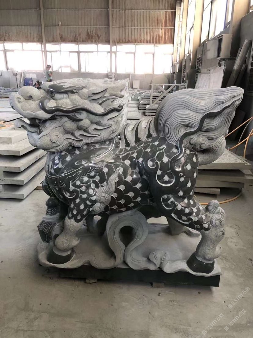青石抱鼓,鏤空花窗,麒麟