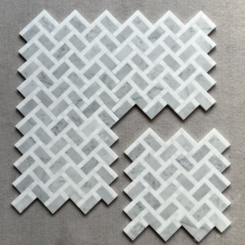 卡白包邊人字形馬賽克