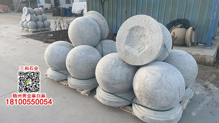 隨州白麻石材圓形擋車石球路障石球車止石圓球石墩路障