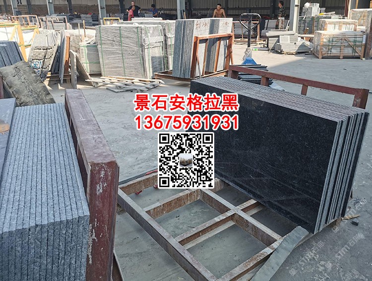 安哥拉黑石材火燒面荔枝面光面工程板安格拉黑黑水晶