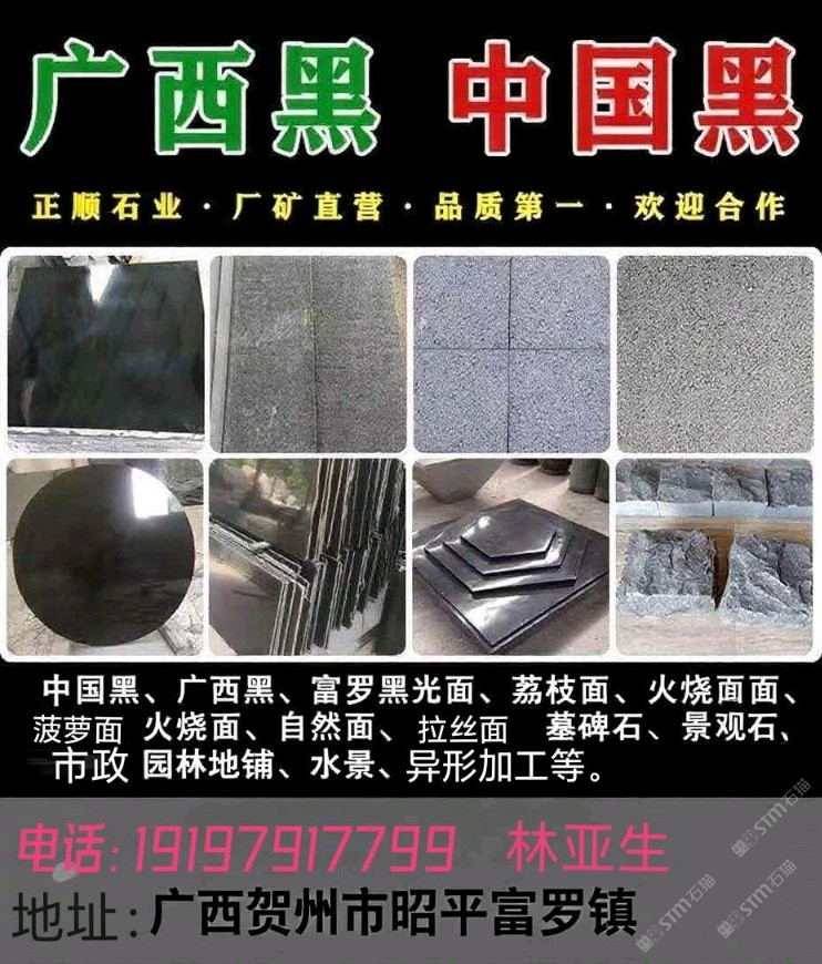 發(fā)布信息: 廣西昭平富羅正順石業(yè),主營廣西中國黑(富羅黑),光面、火燒面、荔枝面、自然面、墓碑石、水景、園林景觀等工程板,本公司廠礦一體,石材生產(chǎn)加工銷售、工程設(shè)計施工安裝,??18750322225張 19197917799林