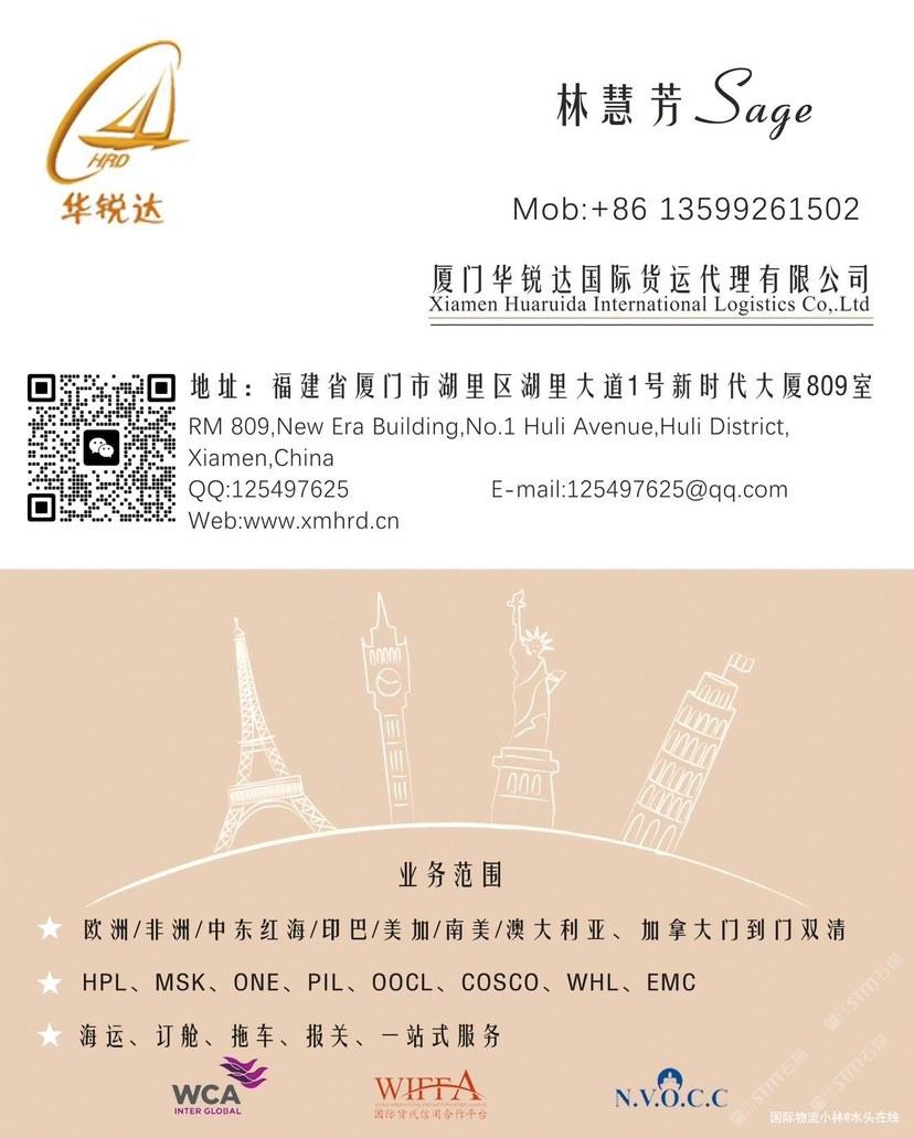發(fā)布信息: 廈門華銳達(dá)國際物流專業(yè)石材國際運(yùn)輸服務(wù),全面覆蓋歐洲、非洲、中東、印巴(印度/巴基斯坦)、南美、澳大利亞及中亞五國等全球主要市場,確保您的石材安全、高效抵達(dá)目的地 歡迎詢價13599261502