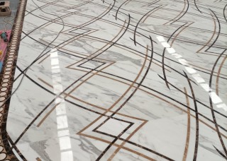康利德水刀拼花.爵士白深啡網帝皇金背景墻精加工