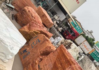 榮燁荒料堆場普拉達綠 大花綠 米白洞 紅洞石