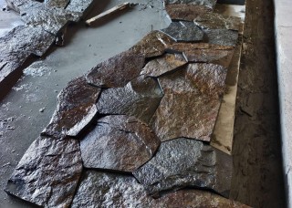 654老礦芝麻黑自然面流水石背景墻干掛墻廠家直銷