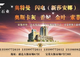 海岸全球石材精品市場主營產(chǎn)品:白玫瑰,翡翠白玉3,香妃米黃2,西班牙米黃,諾娃米黃,流金啡,冰花玫瑰,英格米黃,云多拉灰14,拉菲米黃,翡翠白玉4,靜雅灰(莎士比亞灰),白玉蘭,奧特曼,月光米黃,西班牙米黃(SP礦),西班牙米黃(老礦),蝴蝶米黃1,藍(lán)朵灰,銀河星云,鉑金藍(lán)天,安卡拉白,杜卡迪,意大利木紋,灰太狼,玉貝殼,巴賽灰,新古堡灰,貝利斯灰,夢幻灰,侏羅紀(jì)灰,藍(lán)木紋,瑪莎拉蒂灰,水墨年華,銀河藍(lán),伊麗莎白2,白富美,白金沙,水芙蓮白,高爾灰,天之藍(lán),冰玉,雅典木紋,紅龍玉,黑龍玉,桔子玉,瑪瑙玉,意大利藍(lán)金沙,新藍(lán)貝露,意大利白金沙,灰金沙,藍(lán)金沙,藍(lán)貝魯,海天一色,現(xiàn)代木紋,羊脂白,羊脂白玉,水云紗,清水玉,英倫玉,皇家白玉,玫瑰冰玉,魔幻白,威尼斯棕,南斯拉夫白,東方白,丹巴玉,亞馬遜灰,直紋白玉,漢白玉,東方金玉,水墨風(fēng)情,紫羅蘭5,山水畫,雅士白,爵士白,威尼斯金,梵高灰,云朵拉灰,翡翠白玉,香妃米黃,云多拉灰,蝴蝶米黃,意大利銀灰洞,連卡佛洞,奧巴馬木紋,水云澗(愛奧尼灰),柏斯高灰,意大利羅馬洞石,意大利象牙羅馬洞,鉆石流星,黃金海岸,土豪金,魚肚金,古青玉,莎安娜米黃,莎安娜,雅典黑金花,海韻灰,維納灰網(wǎng),北極光(巴圖礦),北極光4,卡西米灰,鳳尾蘭(藍(lán)寶灰),藍(lán)寶灰,藍(lán)寶灰(愛琴海灰),比薩灰1,比薩灰A礦,湖南黑白根,湖北黑白根,黑白根,意大利灰19,新古堡灰6,夢幻灰8,意大利灰25,意大利灰(多根),藍(lán)木紋6,瑪莎拉蒂灰(國產(chǎn)),伊麗莎白4,白富美1,高爾灰(直紋),瑪瑙玉4,藍(lán)金沙2,藍(lán)金沙(灰金沙),藍(lán)金沙木紋(直紋),意大利藍(lán)金沙1,藍(lán)貝魯1,魚肚金1,意大利白金沙1,清水玉(新礦),玫瑰冰玉(大理石),山水畫1,山水畫4,山水畫11,山水畫9,水墨丹青3,古青玉(深色),新古堡灰(新礦),柏斯高灰5,亞馬遜灰1,布朗灰3,直紋白玉4,漢白玉1,莎安娜(老礦),山水畫6,威尼斯金2,梵高灰3,云朵拉灰(onur礦),柏斯高灰(意大利),黃金海岸(磨光),土豪金1,山水畫10,精品山水畫,阿斯丁白,卡拉卡塔金,土耳其灰10,嫦娥米黃,青玉,古青玉1,西米白玉,黑玫瑰,夢幻黑,世紀(jì)黑冰花,勞倫黑金,莎安娜(新礦),新帝王米黃,新帝王1,紅線莎安娜米黃,奧斯卡灰,意大利山水畫,貴族米黃,新帝王(小根),黃金米黃,北極奇光,白海棠,新林肯米黃,阿娃米黃,白金米黃,新世紀(jì)米黃3,突尼斯米黃,古都灰,巴巴羅薩,卡地亞,卡地亞2,卡地亞灰,羅薩米黃,卡地亞灰8,川普木紋1,啡慕斯,希臘灰,希臘灰(奧斯卡灰),愛馬仕灰(淺藍(lán)底),銀白龍,黑玉髓,普羅旺斯,薩日拉1,薩凡藍(lán),艾利根,歐洞石,高爾灰2,皇家金啡(啡慕斯)1,冰花玉,松香玉(冰花玉),沉香米黃,古典米黃,卡布奇諾2,卡布奇諾1,卡布奇諾(網(wǎng)狀),閃電米黃,新莎安娜(鉆石米黃),新莎安娜米黃,摩洛哥灰,摩洛哥灰1,水晶桃紅,水墨玉2,水墨玉1,水墨玉3,歐亞木紋(希臘白木紋),玉石,白玉石,青玉石,黃玉石,藍(lán)金沙19,藍(lán)金沙11,新中花白,歐典米黃,歐典米黃2,古堡灰,雪花白,安哥拉灰,意大利灰,冰島灰,翡翠月亮谷,世紀(jì)米黃(老礦),瑪莎拉蒂灰2,碧波紫薇,星云灰,玫瑰金2,威尼斯金(斜紋),藍(lán)金沙(藍(lán)色多瑙河),愛奧尼灰(太空灰淺色),魚肚灰,彩云飛3,紫山水,山水畫3,山水畫7,山水畫8,金沙木紋(直紋),中花白,中花白1,中花白(細(xì)花),細(xì)紋雪花白,細(xì)花白,大花白(大理石),金摩卡(細(xì)花),白金摩卡(反切面),金摩卡(細(xì)花),灰摩卡4,灰摩卡(細(xì)花),灰摩卡(粗花),灰摩卡5,灰摩卡,摩卡石,金摩卡1,灰摩卡1,金摩卡,金摩卡4,山水花白,云貝黑,意大利灰29,意大利灰26,意大利灰10,佛羅倫薩灰2,希品灰,古堡灰1,古堡灰4,古堡灰12,古堡灰7,古堡灰10,比薩灰2,塞浦路斯灰(比薩灰),瑪卡龍,維納斯灰4,海洋米黃1,太空白,新卡拉拉白,法國木紋,木化石,云多拉灰(古堡灰),新古堡灰4,古堡灰9,新古堡灰9,北極灰1,北極光(宇杰礦),新云多拉灰10,北極光5,古堡灰(老礦),新古堡灰2,卡諾灰2,白金沙3,山水畫5,靜雅白,靜雅灰1,世紀(jì)米黃,羅曼蒂克灰,羅曼蒂克灰2,紫網(wǎng),幻影灰,山水印象,名仕灰1,意大利木紋2,意大利木紋1,意大利.藍(lán)瓊,小魚肚金 (意大利),愛奧尼灰企業(yè)地址:廣東云浮云城區(qū)G324(福昆線)河口鎮(zhèn)(云浮東高速出口)永豐橋旁田心工業(yè)區(qū)