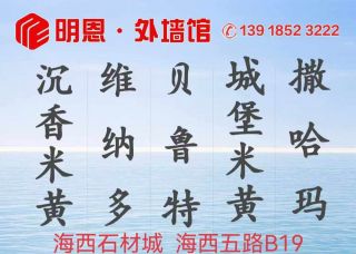 明恩石業(yè)主營(yíng)產(chǎn)品:威尼斯棕,范特西,意大利天川金,魚(yú)肚金,愛(ài)馬仕金,威尼斯黑,威尼斯灰,魚(yú)肚灰,希爾頓灰,沉香米黃,維納多,城堡米黃,貝魯特,溫莎米黃,撒哈瑪,小金花,新西米企業(yè)地址:福建南安水頭鎮(zhèn)澳盛大板市場(chǎng)1號(hào)路6B棟6區(qū),明恩石業(yè)
