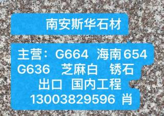 鑫萬佳石材主營(yíng)產(chǎn)品:新664#,新G664,新664,G664,G664(火燒面),G664(荔枝面)企業(yè)地址:福建南安閩南第一建材市場(chǎng)9棟13-14號(hào)辦事處