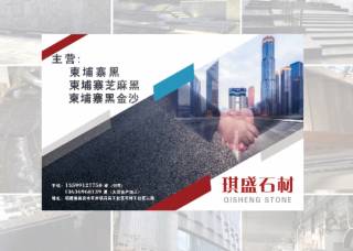 琪盛石材主營(yíng)產(chǎn)品:柬埔寨芝麻黑,金鉆黑,英國(guó)棕(LEE礦),世貿(mào)金麻1,加州金麻1,綠星,印度蘭1,安哥拉棕,安哥拉黑,皇室啡,紫點(diǎn)金麻(現(xiàn)代金麻)反切面,幻彩紫,金鉆麻,烏克蘭幻影藍(lán),加多利2,桂林紅,木瑪麗,黑金沙,藍(lán)鉆(挪威)企業(yè)地址:福建泉州石井鎮(zhèn)后店石材工業(yè)區(qū)二路