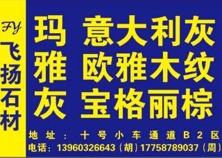 飛揚(yáng)石業(yè)主營產(chǎn)品:歐亞木紋,奧巴馬銀灰,歐亞木紋2,雅蘭灰,雅云白,寶格麗棕,意大利灰25,新瑪雅灰(貴州礦),保加利亞灰,古斯頓灰,自由灰,希臘灰(深底),意大利棕,新水紋銀,新云多拉灰15,冰島灰3,金絲雅士白,新奧特曼灰(新瑪雅灰),摩根灰,摩根灰(JT礦)企業(yè)地址:福建泉州南安市水頭鎮(zhèn)新澳順5A通道B2區(qū)